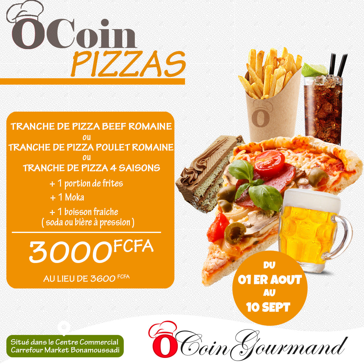 Ô Coin Gourmand est un fast food et mini boulangerie qui a ouvert ses portes dans le centre commercial Carrefour Market à Bonamoussadi. Ô Coin Gourmand vous propose une large gamme de produits allant des Sandwich au café en passant par les pizza, glaces, viennoiseries, jus de fruits, sodas, bières, salades, hamburgers, tartelettes, gâteaux, cake et crêpes.