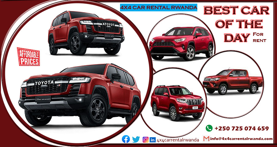 4x4 Car Rental Rwanda is one of the best car rental agencies in Kigali which has the best fleet of cars at an affordable price. 4×4 Car Rental Rwanda has its main stations in Kigali, this makes planning your journey a lot easier with when renting a car in Rwanda. We have a fleet of latest luxury and economy car models that will fit your budget, We offer both short and long term car hire options. Our 4×4 car rental service caters for a range of customer needs, with unbeatable car rental deals to cater for those looking for budget car rental in Rwanda, as well as those looking to rent a luxury car for a tour in Rwanda or a special event, 4×4 car rental Rwanda will have the rental car for you. Our great discounts on long term car rentals comes with custom upgrades to as per the clients car rental needs. The car hire extras include; child seats, GPS, Crossing border assistance, Camping gear and more. Rest assured that we have your interest at heart.