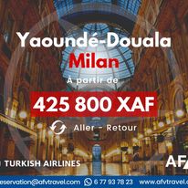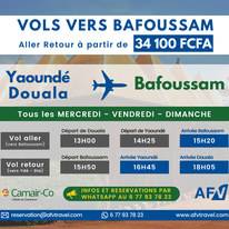 Agréée par le MINTOUR fin 2004, accréditée IATA depuis 2005, l’Agence Française de Voyages (AFV) est une agence de voyages et de tourisme. Elle s’est vite imposée pour la vente de billets d’avion comme l’une des principales agences de la place par ses options innovantes. Riche de sa multiplicité culturelle et de sa compréhension des réalités locales, AFV Cameroun impose des normes de service européennes et vise un niveau de satisfaction maximal de sa clientèle.