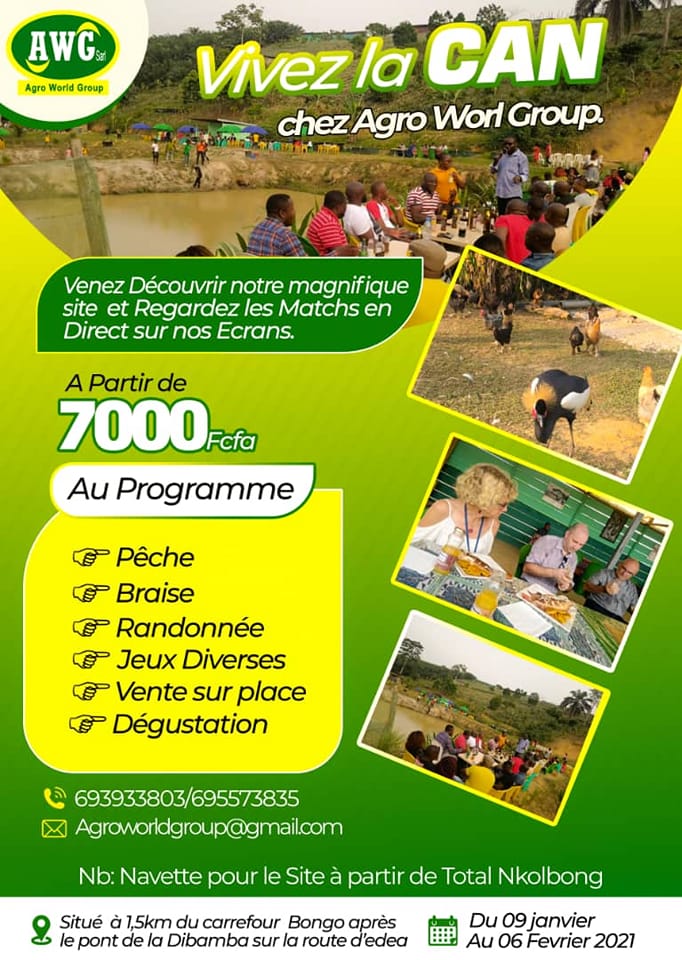 Agro World Group est une entreprise agropastorale. Notre objectif premier est de valoriser l'économie au Cameroun à travers plusieurs activités à savoir : la quête de l’autosuffisance alimentaire pour les populations vivantes au Cameroun, et dans la sous-région Afrique Centrale. Nous axons nos activités dans plusieurs domaines à savoir : l'aviculture, l'agriculture, la pisciculture, l'aquaculture, l'apiculture. L’élevage de la volaille telle que : l'élevage des poulets, l'élevage des porcs et pondeuses, l'élevage les poulets locaux, les canards, les oies, dindon, pistarde, caille, perdrix, Faisan, pigeons, autruches, paon… Par ailleurs nous commercialisons les matériels de production et d’élevage de la volaille tels que : les incubateurs, les éclosoirs de grande capacité, les couveuses, les pesons, les bascules… l’élevage des poissons d’eaux douces tels que : les TILAPIA et les poissons chats, la vente du matériels d’élevage intensif (en bacs) et extensif (en étang de poissons): les filets, les bacs. La vente d’aliments complets de poissons de différentes tailles allant de l’alevinage, aux géniteurs en passant par les poissons de 1 kg et plus. En plus, nous apportons notre expertise à travers la formation des individus dans l’apprentissage des techniques piscicoles En somme, nos activités orientées vers la mise en valeur des ressources naturelles attirent de nombreux visiteurs ; c’est pourquoi nous avons ouvert nos portes aux touristes, qui de plus en plus sont émerveillés par le décor du paysage varié de nos espaces exploitations.