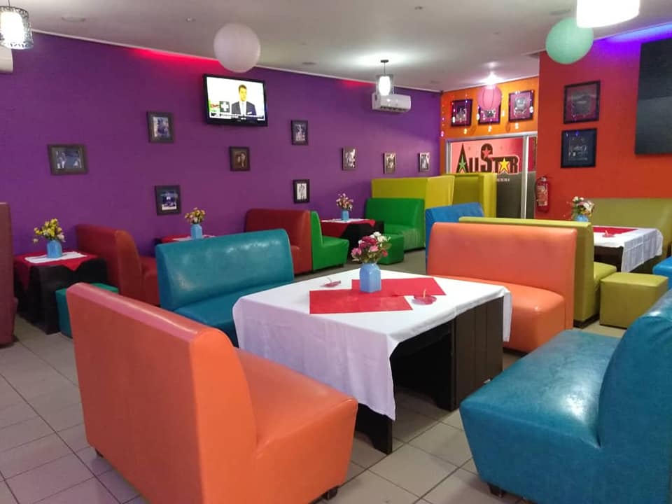 Le All Star Sports Lounge est un Restaurant, Bar, Lounge américain, spécialisé dans la restauration américaine et camerounaise. Situé à Bastos, derrière l’Ambassade de Suisse, le All Star met à votre disposition un espace Cosy et Coloré, avec une atmosphère conviviale, où vous pouvez passer des moments agréables autour de Brunch, déjeuners et dîners en famille, amis ou entre collègues. Bénéficiez de l’espace sécurisé du restaurant, de sa discrétion et de la bonne ambiance qui y règne. Le Restaurant s’est doté d’une large gamme de plats, qu’ils soient américains ou camerounais ; ceci pour satisfaire pleinement sa clientèle. Pour accompagner ces plats, bénéficiez d’un choix diversifié de boissons, des soft drinks aux boissons les plus corsées. Cocktails et liqueurs tout est mis à votre disposition pour que vous soyez pleinement satisfaits.