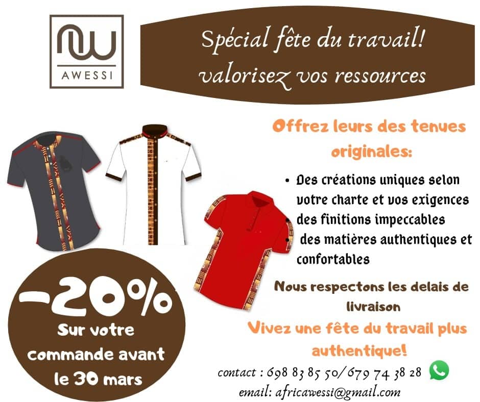 Awessi est une entreprise spécialisée dans la création et la production des vêtements prêt-à-porter. Les lignes de vêtements inspirées par notre culture et faites à base d'un métissage de tissus prioritairement d'Afrique et aussi du monde. L'ambition de l'entreprise est de faire porter le Made in Cameroun localement et surtout mondialement. Awessi est basée à Douala. Awessi c'est la mode chic, jeune et sympa pour les africaines modernes qui s'assument.