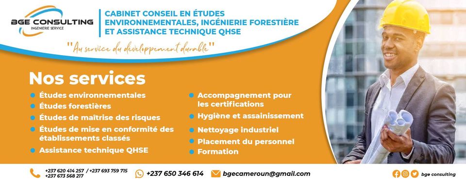 BGE Consulting est un cabinet conseil en études environnementales, ingénierie forestière et QHSE. BGE Consulting est situé à Douala au quartier Ndogbong.