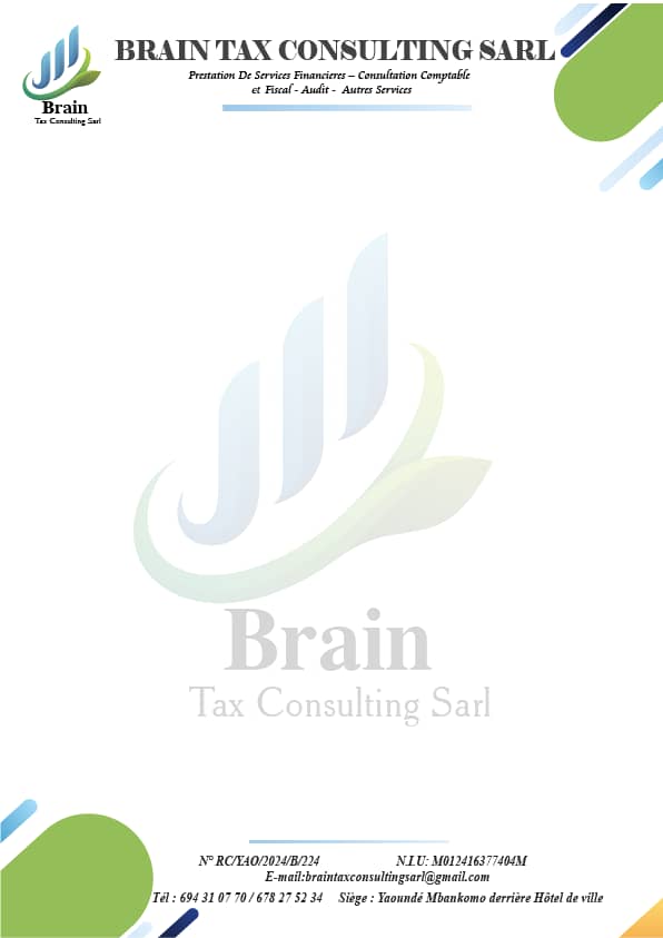 BRAIN TAX CONSULTING SARL est une société à responsabilité limitée basée dans la ville de Yaoundé, qui offre ses prestations dans l'assistance comptable, fiscale et financier auprès des entreprises, elle est spécialisée dans l'audit comptable, fiscale et le management des organisations. BRAIN TAX CONSULTING s'illustre comme une entreprise citoyenne au service de la qualité de ses prestations.