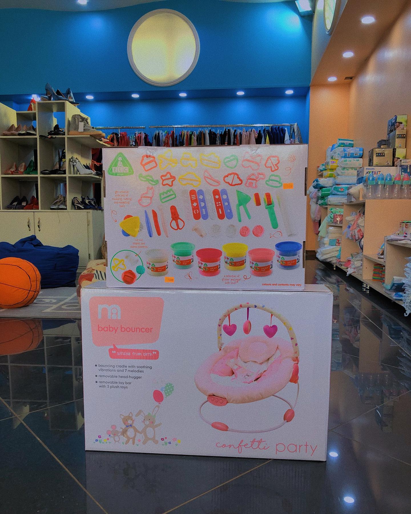 BabyBoom est une boutique spécialisée dans la vente des vêtements et accessoires pour nouveaux nés, enfants et femmes. Située à Yaoundé, en face de l’Hôtel la Falaise, cet établissement est un véritable paradis pour : les femmes mamans, futures mamans, avec le nécessaire pour la Layette, ceux et celles désireux (ses) d’offrir un cadeau à une maman ou à un enfant et même pour des femmes voulant se faire belles. Vous pouvez y trouver : Des vêtements et accessoires pour femmes, des vêtements et accessoires pour enfants, des vêtements et accessoires pour nouveaux nés, des jouets.