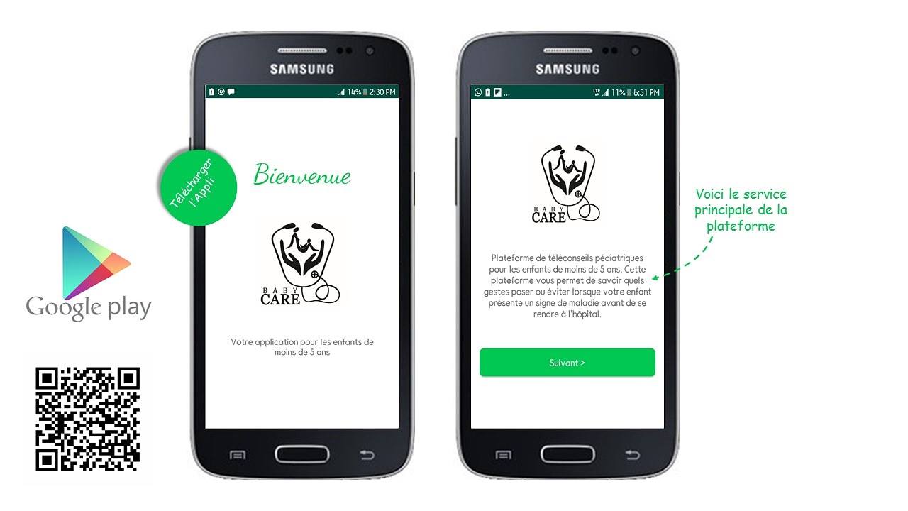 BabyCare est une application mobile de téléconseils pédiatrique pour les enfants de 0 à 5 ans. Elle permet de donner des gestes de premier secours à poser.