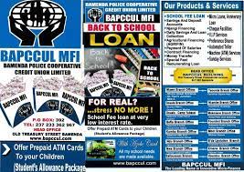 Bamenda Police Coorperative Credit Union (BAPCCUL) est un établissement bancaire qui a pour mission d’être une institution financière dynamique qui cherche à élargir l'accès et à participer à des services financiers multiples et diversifiés pour atteindre les valeurs économiques et sociales et le bien-être des parties prenantes. Il existe 16 succursales à travers le territoire national à savoir : Ancienne rue du Trésor Bamenda (Siège social), Douala Bonaberi, Yaoundé, Douala Camp Yabassi, Nkwen Ghana Street, Bafia, Nkambe, Kumba, Ndu, Makenene, Mbot, Foumbot, Nkwen Mile 3, Bafoussam, Bamenda Up Station, Nvondou.
