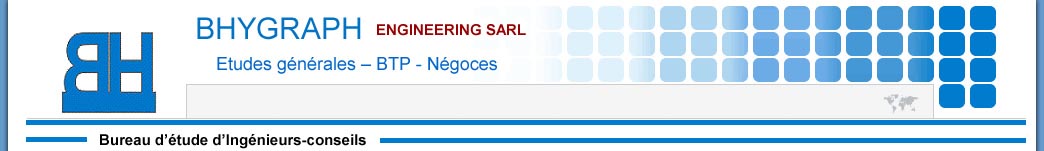 Bhygraph Engineering est une entreprise d’ingénieurs-conseils créée en 1997, intervenant au Cameroun et à l’international. Elle offre ses services dans plusieurs domaines, notamment : les infrastructures de transport (routes, aéroports, voie ferrées), les relevés topographiques, les projets de bâtiments, les projets d’usines, – la construction des réservoirs de stockage, les projets de barrages, la construction métallique, l’inspection et l’auscultation des ouvrages, l’hydraulique et l’assainissement urbain. Ses interventions dans la quasi-totalité des pays d’Afrique centrale lui confèrent une bonne réputation auprès des différents gouvernements. Bhygraph dispose d’un panel d’experts multidisciplinaires couvrant les disciplines du génie civil (incluant hydrologie, topographie, hydraulique), de la géotechnique, du bâtiment et des ouvrages d’art.