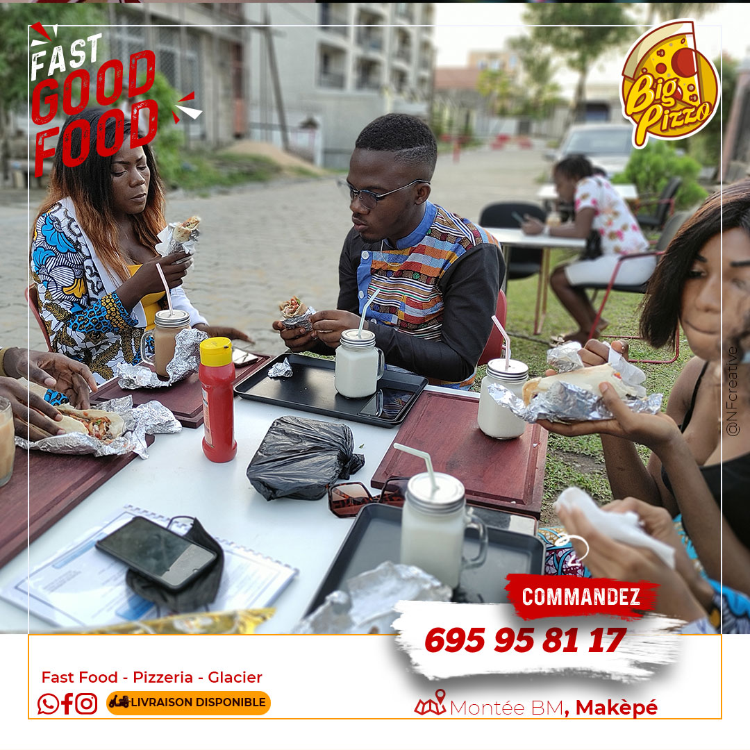 Big Pizzo est votre nouveau Fast-Food plein air situé à Douala au quartier Makepe. Chez Big Pizzo, c'est rapide, c'est bon, c'est fun.