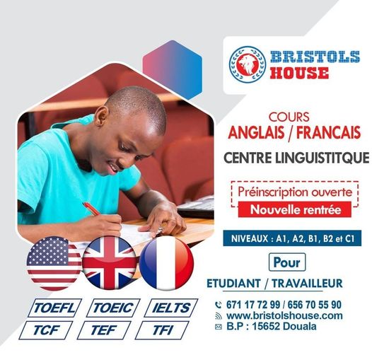 Bristols House est un projet de l’Association Bristols House, organisation à but non lucratif dont le but est de promouvoir le bilinguisme et le multiculturalisme.Notre mission est de faciliter l’apprentissage des langues française et anglaise. Chaque étudiant de Bristols House reçoit un traitement professionnel, respectueux et amical créant un environnement calme et familier qui facilite l’apprentissage de chacun.Nous croyons en notre capacité à fournir des cours de langue de haute qualité basés sur notre expérience professionnelle. Nos professeurs sont parfaitement qualifiés pour offrir un excellent service à chaque niveau.A la fin de chaque niveau, tous nos étudiants reçoivent un certificat selon le Cadre Européen Commun.Grâce à notre réseau de consultants basé au Cameroun et à l’étranger, vous bénéficiez des services supplémentaires tels que : l’orientation- conseils, l’assistance visa, contrat de travail, la préparation aux examens de langues.Nous sommes une école de langues qui a pour mission de faire ce que nous aimons le plus: enseigner le français et l’anglais.