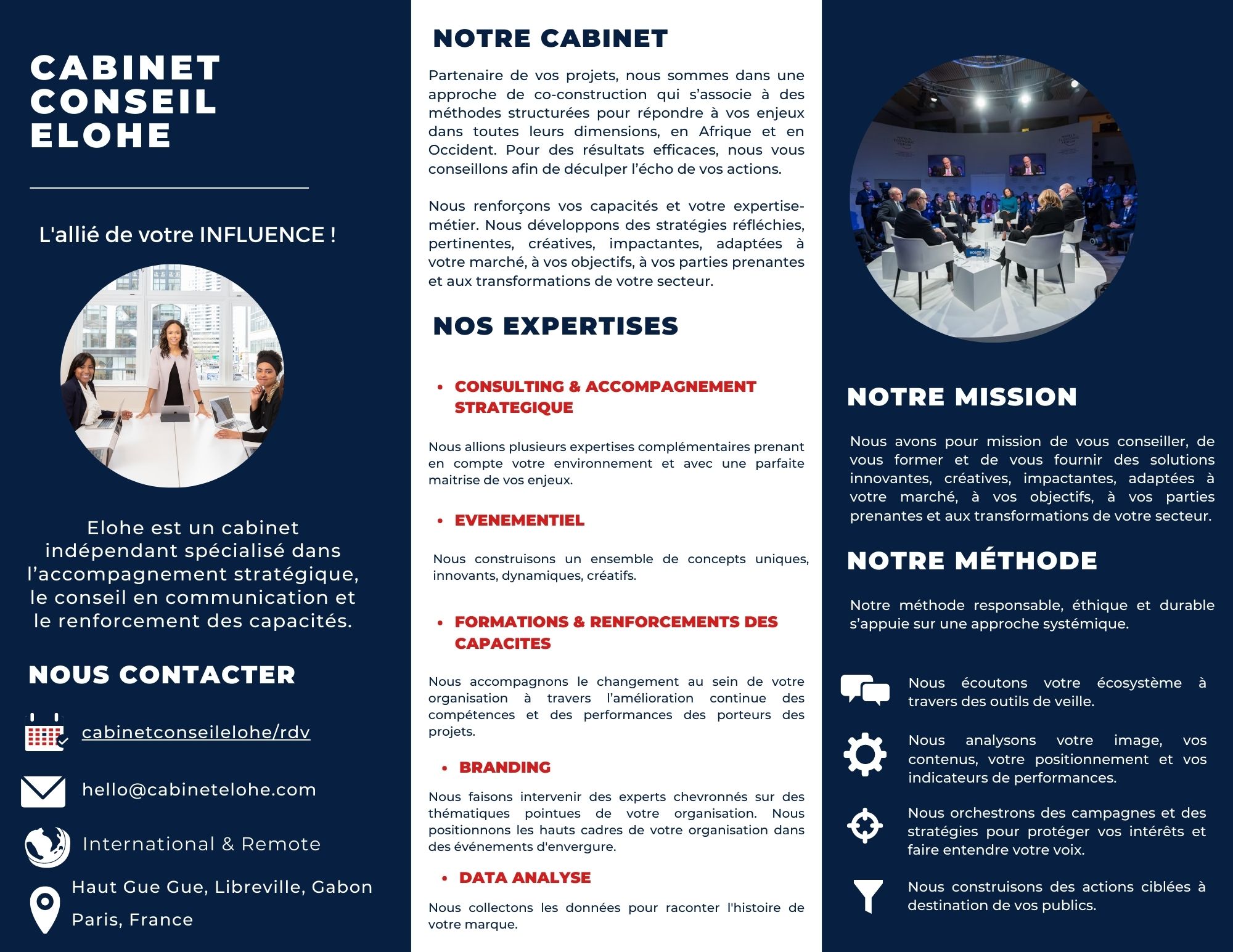 Elohe est un cabinet indépendant spécialisé dans l'accompagnement stratégique, le conseil en communication, les relations publiques, la Responsabilité Sociétale des Entreprises (RSE), la formation et le renforcement des capacités. Créatif et fin stratège, nous déployons nos expertises à destination des organisations publiques & privées, des dirigeants, des personnalités publiques/politiques qui veulent emmener leurs collectifs vers plus de sens pour générer un impact positif, performant et rentable. Nous vous conseillons afin de déculper l’écho de vos actions. Nous renforçons vos capacités et vos expertises-métiers. Nous développons des stratégies réfléchies, pertinentes, créatives, impactantes, adaptées à votre marché, à vos objectifs, à vos parties prenantes et aux transformations de votre secteur.