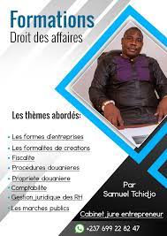 Le Cabinet Jure-Entrepreneur Sarl est un cabinet de conseil juridique, fiscale, comptable, comptable et de financement d'entreprise. Crée en janvier 2019 par Samuel Tchidjo, juriste soucieux d'un accompagnement global performent et de qualité pour les TPE et PME et désireux de fournir une expertise de choix à la Diaspora volontaire d'investir localement.
