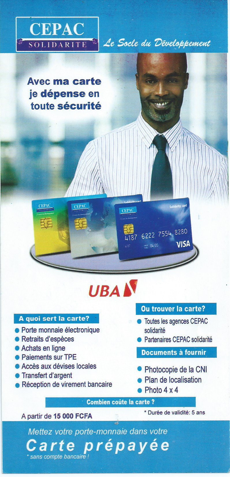 La Caisse d'Epargne et de Crédit de la Solidarité (CEPAC-SOLIDARITE) est un établissement de Micro Finance de 1ère catégorie agrée par le Ministère des Finances (MINFI) le 08 MAI 2002 comme sous le N° 00233/MINFI. Nous vous proposons de nombreux services notamment le service d’épargne, le service de financement et les services à valeur ajoutées. Avec une équipe de jeune dynamique et dévouée à la tâche, être proche de vous est une priorité pour la CEPAC-SOLIDARITE.