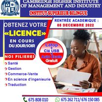 Cambridge Higher Institute of Management and Industry connu sous l’appellation de CAMTECH UNIVERSITY est une école professionnel agrée et qualifiée qui forme ses étudiants à devenir des leaders de demain. Camtech University, c’est également un solide partenariat avec la fondation Canadienne Meritt scholarship Academic qui met à la disposition de tous les étudiants de Camtech University : des Laptops, des téléphones portables Android, des clés USB, des thermomètres électroniques, des Woofer radios avec Bluetooth, des formations à l'autoécole ainsi que des Séminaires animée par des experts venus du Canada.
