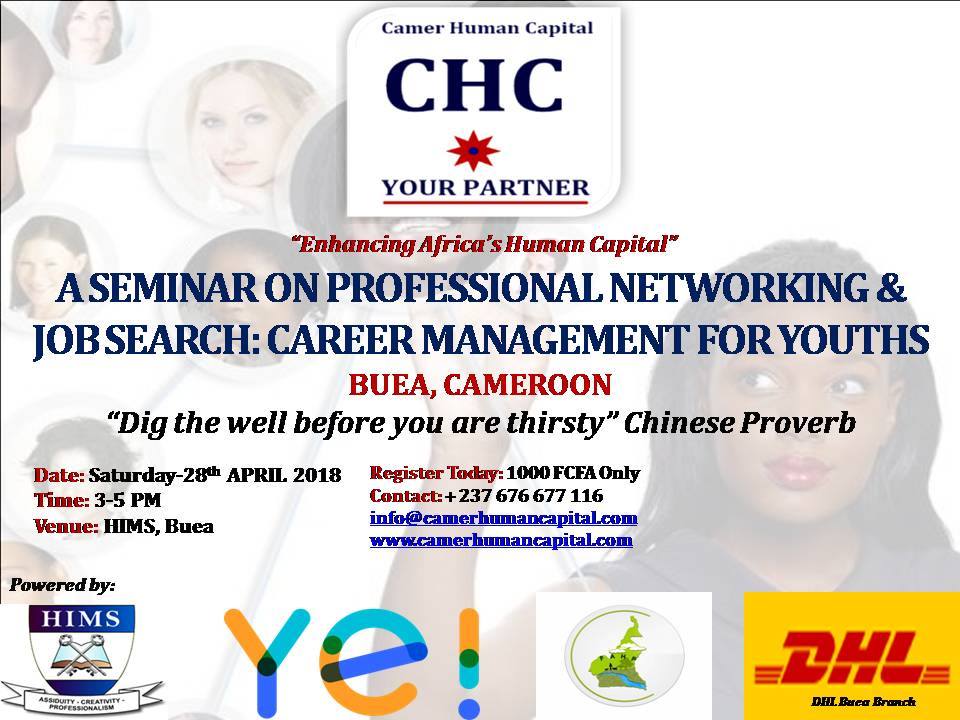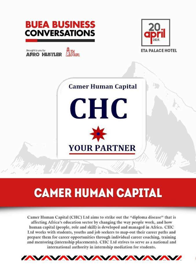 Camer Human Capital (CHC) Ltd vise à rayer la maladie du diplôme qui affecte le secteur éducatif de l'Afrique en changeant la façon dont les gens travaillent, et comment le capital humain est développé et géré en Afrique. CHC Ltd travaille avec des étudiants, des jeunes et des demandeurs d'emploi pour cartographier leurs parcours de carrière et les préparer à des occasions de carrière par le coaching individuel de carrière, la formation et le mentorat. CHC Ltd s'efforce de servir d'autorité nationale et internationale dans la médiation de stages pour les étudiants.