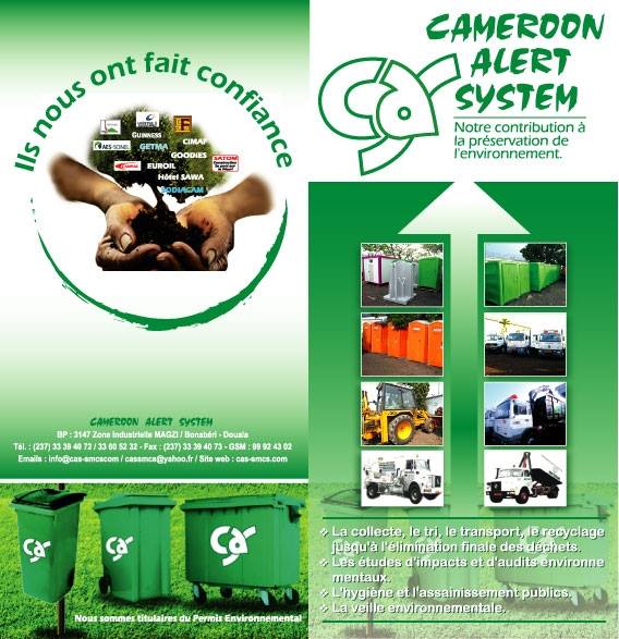 Cameroon Alert System Sarl (CAS Sarl) est une PME camerounaise aux capitaux privés. Cette entreprise de prestation de services a vu le jour en 1996. Elle offre des services dans les technologies et techniques propres de l’environnement. Aujourd’hui, elle compte quatre (04) agences reparties sur le territoire national : Yaoundé, Ngaoundéré, Edéa, Limbé.