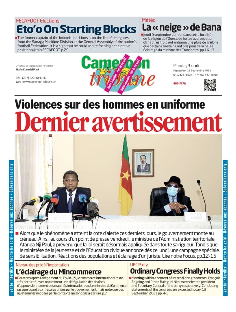 Cameroon Tribune est un quotidien généraliste camerounais créé par le gouvernement en 1974. Ce journal est longtemps resté le seul journal autorisé au Cameroun. À l'origine, il était publié en deux versions, une version francophone et une version anglophone. Néanmoins, les méventes l'ont obligé au milieu des années 1980 à fusionner les deux versions, en mêlant des articles en anglais et d'autres en français. Réputé très proche de l'État camerounais, les Camerounais ont pendant un moment apporté peu de crédibilité aux annonces du Cameroon Tribune souvent surnommé le « journal des bonnes nouvelles » ou « la voix d'Etoudi » (Etoudi est le quartier de Yaoundé dans lequel est situé le palais présidentiel), il fait aujourd'hui la référence pour ce qui est de la publication des informations légales.