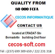 Cecos Informatique est un cabinet d’étude et de conception des systèmes informatiques créé en 2005. Cecos Informatique est immatriculé au registre du commerce et du crédit immobilier (RCCM) au numéro N°116800131680X et à la CNPS au numéro 325-0101143-R. Cecos Informatique possède une agence située à Ngoa-Ekele au lieu dit Cradat. Cecos Informatique a pour objectif d’apporter sa pierre à l’édifice de l’informatisation au Cameroun. il offre un cadre adéquat pour toute personne désirant se tourner vers le monde de l’informatique, à savoir: le secrétariat bureautique, la maintenance informatique, le développement web, l’installation et la maintenance réseau, la vidéo surveillance etc. Cecos Informatique est aussi un cadre d’apprentissage, qui ouvre chaque année ses portes à de nombreux étudiants désireux de s’insérer dans le monde socio-professionnel à travers des stages.