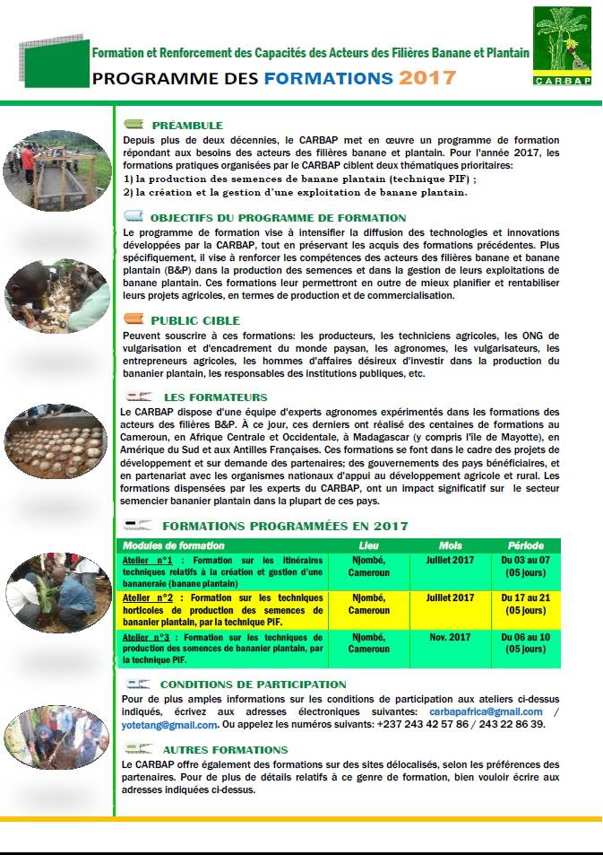 Le Centre Africain de Recherches sur Bananiers et Plantains (CARBAP) est une institution internationale de recherche et développement spécialisée sur les bananiers et bananiers plantains. Ses activités couvrent l'Afrique centrale et occidentale. Sa vision est celle-ci "l'émergence des filières banane et plantain structurées en Afrique centrale et occidentale pour un impact majeur sur la sécurité alimentaire et le revenu des populations".