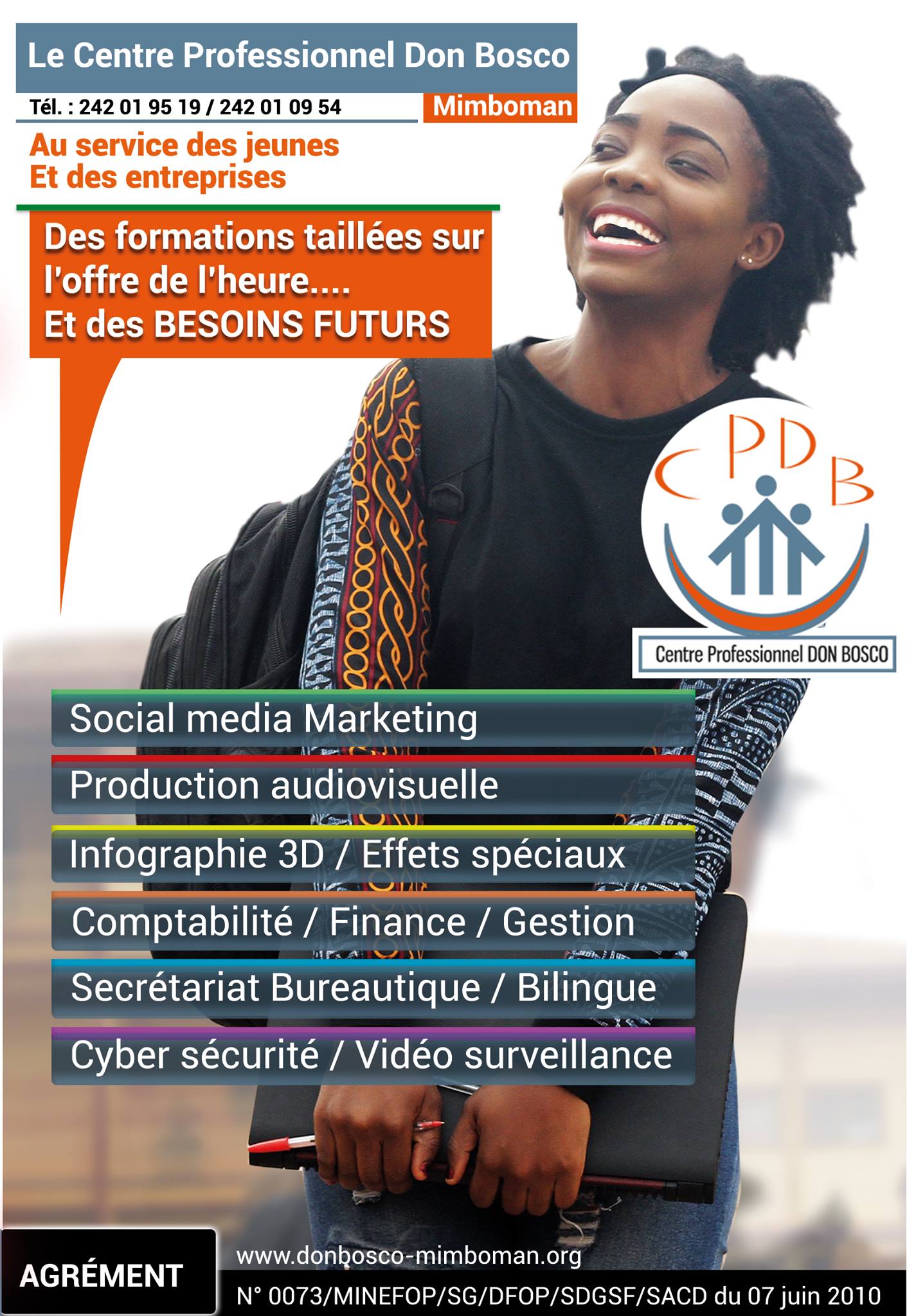 Centre de formation et diplômes professionnels à Yaoundé au Cameroun, le Centre Professionnel Don Bosco (CPDB) Mimboman agréé par le MINEFOP, vous offre des formations aux métiers des TIC et métiers industriels. Nous vous offrons des formations pratiques et de qualité dans les domaines de la menuiserie, la métallerie, la couture et l’informatique. Don Bosco c'est aussi un institut catholique technique.