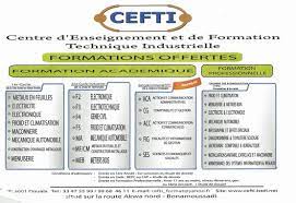Le Centre d’Enseignement et de Formation Technique Industrielle (CEFTI) est un centre de formation professionnel crée dans le but d’aider à l’insertion rapide des jeunes. Il s’agit de la toute première des écoles fondé par le promoteur de l’Institut Universitaire de la Côte (IUC). CEFTI offre des formations en : électricité, électronique, froid et climatisation, menuiserie, mécanique automobile, chaudronnerie, soudure tuyauterie, installation sanitaire, maintenance des systèmes informatique et réseaux, infographie, secrétariat bureautique, secrétariat comptabilité, comptabilité informatique et gestion.
