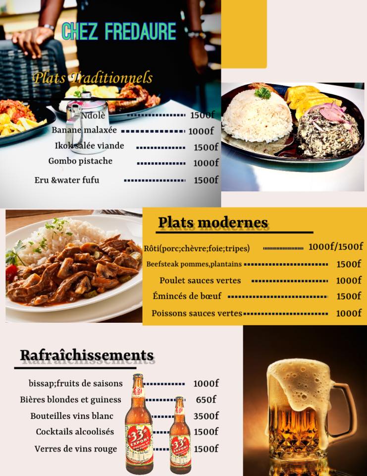 Chez Fredaure est un espace convivial pour vos grillades et vos plats africains. Notre spécialité est le Ndolè chez nous ; mangez un Ndolè typique du littoral sainement et soigneusement préparé. Notre service de livraison vous offre un repas sain pour vos pauses de midi.