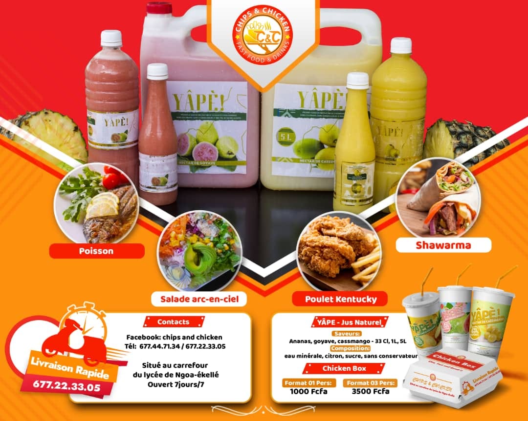 Chips & Chicken est une entreprise de restauration orientée client et innovation. Chips & Chicken s’efforce au quotidien de vous offrir le meilleur de la restauration tant au niveau de la qualité que du cout et du maintien de votre santé.