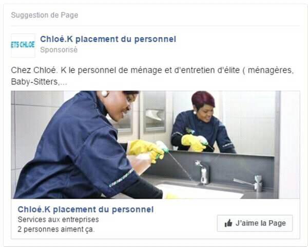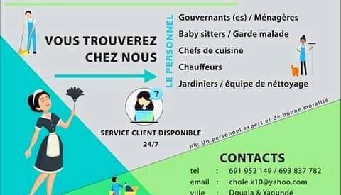 Chloé. K est une agence des ressources humaines spécialisée dans le placement de personnel de maison et des structures recrutés et formés pour vous. Chez Chloe.K vous trouverez un personnel formé mis a votre service. Un suivi après-vente de qualité pour le maintien de la qualité de nos service et tout ceci a des prix très abordable selon votre besoin. Nos ménagères sont soit interne ou externe, à temps partiel ou complet. Nous avons des secrétaires, des auxiliaires de vie. Venez découvrir l'expérience avec chloé K et vous ne serez pas déçus.