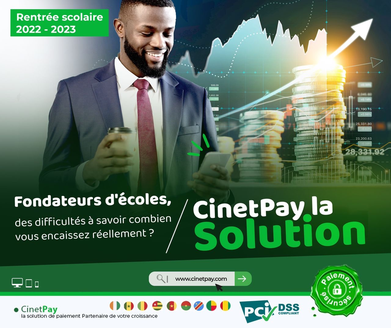 CinetPay est une entreprise fintech Africaine, créée en 2016. Nous accompagnons les entreprises dans la croissance de leur activité en les équipant avec des solutions d’encaissement et de transfert de monnaie électronique. Par notre activité, nous offrons de nouvelles opportunités aux entrepreneurs d’Afrique francophone, permettons aux millions de personnes exclues des services financiers de payer en ligne, et contribuons ainsi à l’éclosion d’une véritable économie numérique. CinetPay a été fondé par 2 amis partageant une passion pour la technologie, l'entrepreneuriat et l'inclusion financière.