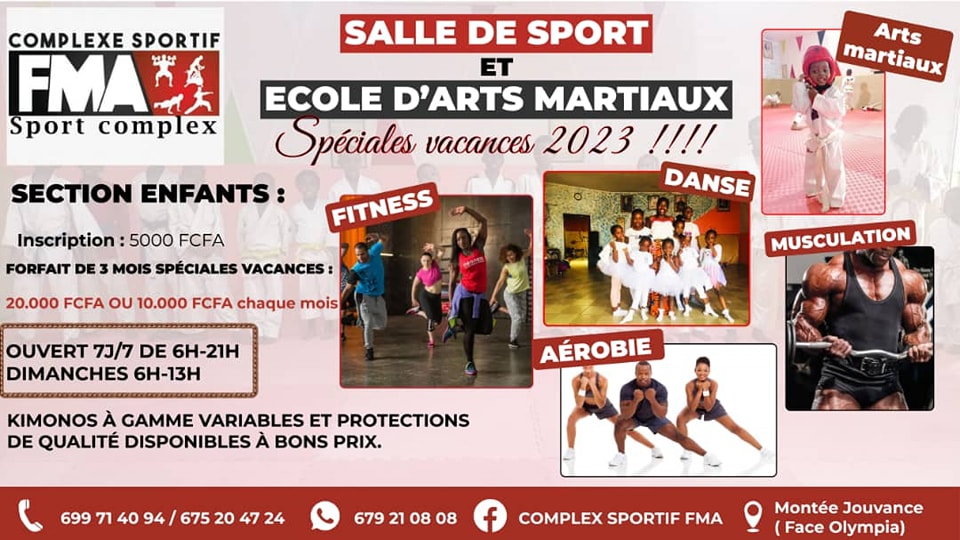 Le complexe sportif FMA est une salle de sport qui propose toutes les variétés de sports de salle et de danses. Il est situé au quartier Nsimeyong à Yaoundé.