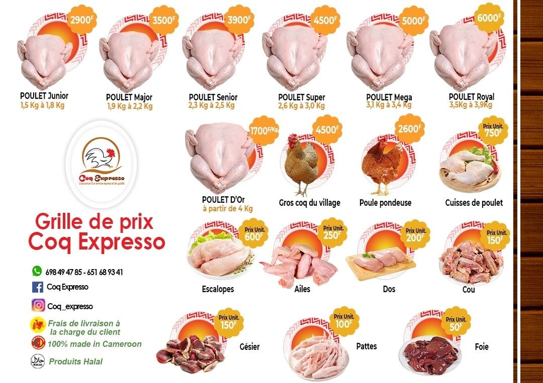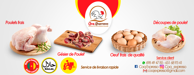 Coq Expresso est une start-up agro-alimentaire avec pour mission principale de produire ; transformer et de distribuer de la volaille et ses produits dérivés. Notre priorité́ est de toujours vous offrir le meilleur poulet dans les meilleures conditions possibles. Nos équipes sont constamment sur le terrain pour s'assurer de la bonne marche des activités. Avec coq Expresso vos attentes se réalisent dans l'immédiat. Quel que soit votre quartier de résidence, que vous soyez restaurateur, ménage, etc. commander vos poulets chez nous et bénéficiez de nos services de qualité et des avantages qui y sont inclus.