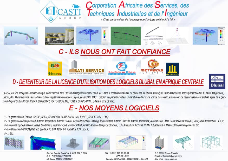 - Détendeur et distributeur agréé de la licence d’utilisation des logiciels Dlubal en Afrique Centrale