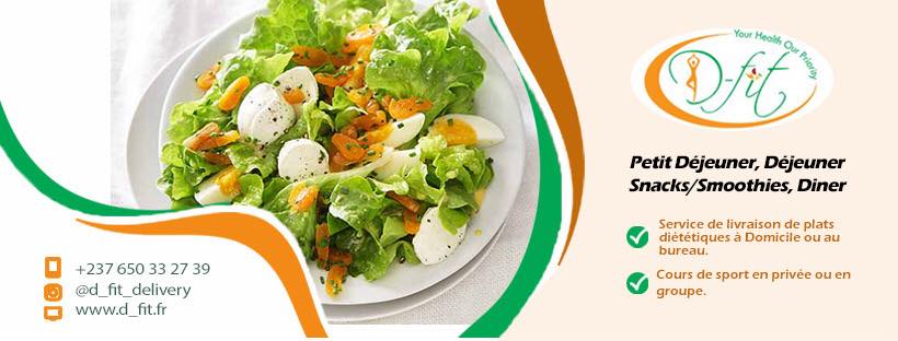 D-FIT est une jeune start-up, qui fait dans la livraison des plats diététiques, à domicile ou à votre lieu de service. Jeune entreprise Camerounaise, nous avons pour ambition de faire du bien-être une notion encrée dans la culture Africaine. Nous nous donnons pour mission de promouvoir les effets positifs d’une bonne alimentation et d’une vie physique active pour atteindre cette ambition.