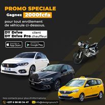 DY Drive Cameroun est une application et un service de commande de véhicules avec chauffeur, qui vous permet de vous déplacer rapidement. Nous sommes à votre disposition toute l'année pour vos transports privés et professionnels en taxi, transport public routier de personnes en voitures et livraison de colis.