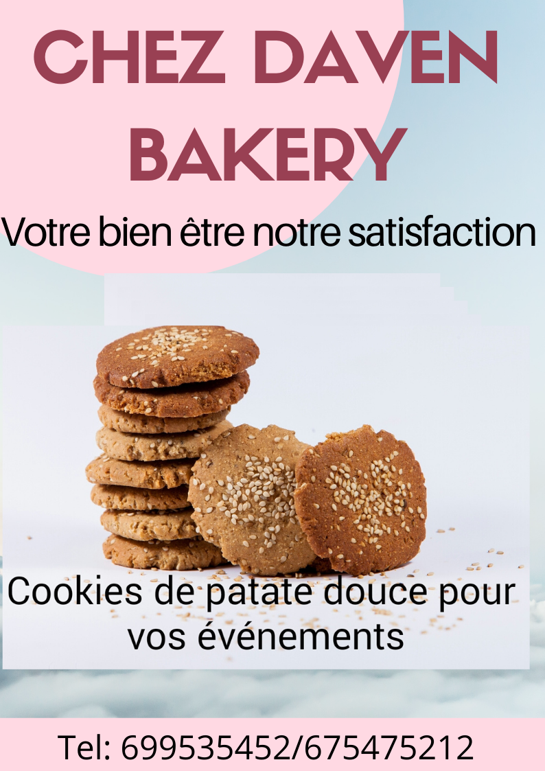 Daven Bakery est une petite patisserie situé à Douala au Cameroun. Installée dans le quartier Denver-bonamoussadi, elle s'active en permanence pour confectionner des produits telque : les gâteaux , les cookies, Sablés, Bouillie, Beignets et bien d'autres.