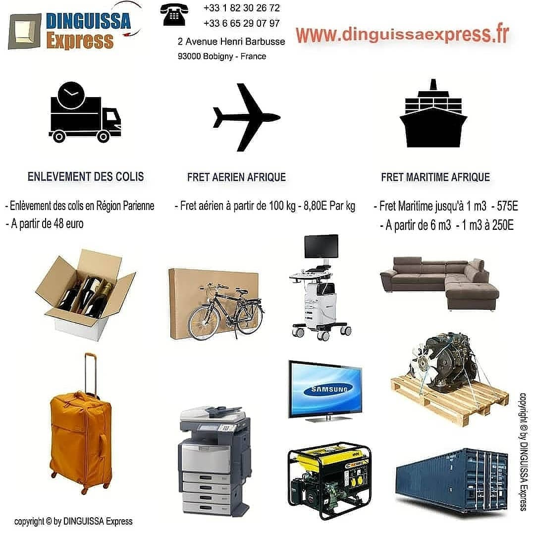 Dinguissa Express est spécialisé dans le fret aérien et fret maritime, le transport de marchandises, enlèvement et livraison des gros et petits colis dans les véhicules de moins de 3,5 Tonnes, Déménagement national et international, transport de personnes. S’appuyant sur les compétences, la fiabilité et la synergie de ces partenaires pour vous offrir des solutions performantes, nous vous garantissons le plus grand respect de délai d'expédition de vos colis. Nous proposons tout conditionnement en carton, en bois, tout emballage industriel pour les secteurs maritime, aérien ou routier. Nous travaillons avec + de 25 partenaires présents en France et en Afrique parmi lesquels le Cameroun.