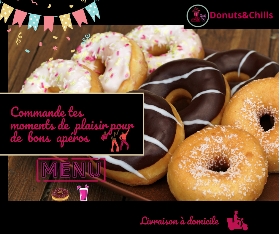 Donuts&Chills est une initiative née d’un moment de convivialité entre amis, nous sommes quelques jeunes désireux d’apporter un peu de douceur et de jovialité dans la vie de notre communauté par le biais de nos douceurs pâtissières et de nos boissons naturelles. Nous sommes désireux de vous accompagner pendant tous vos moments d’échanges, nous nous chargeons de vous faire gagner en temps en préparant sur commandes vos donuts et vos boissons. Nous faisons aussi des paniers cadeaux personnalisés vous permettant de surprendre vos proches quand vous voulez. En un appel ou message, recevez le nécessaire pour vos moments privilégiés. Livraison à domicile. Précommande au moins un jour à l'avance.