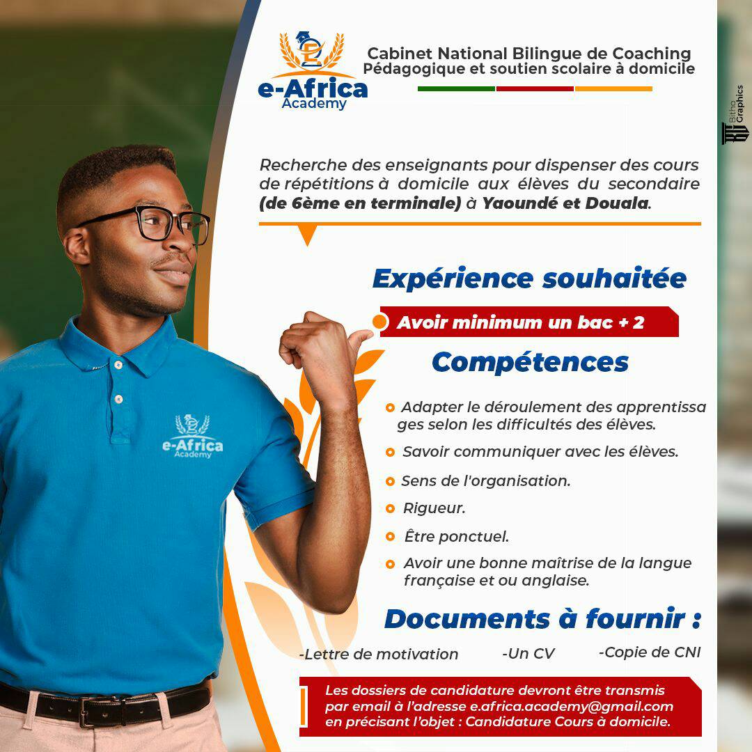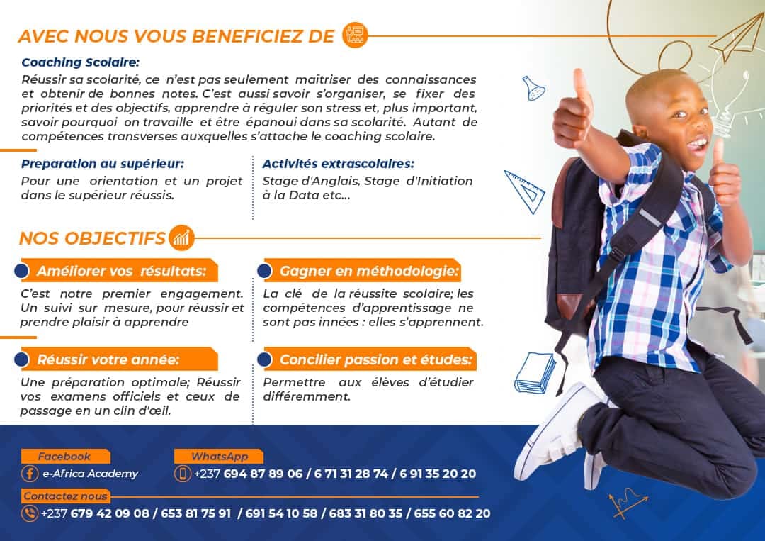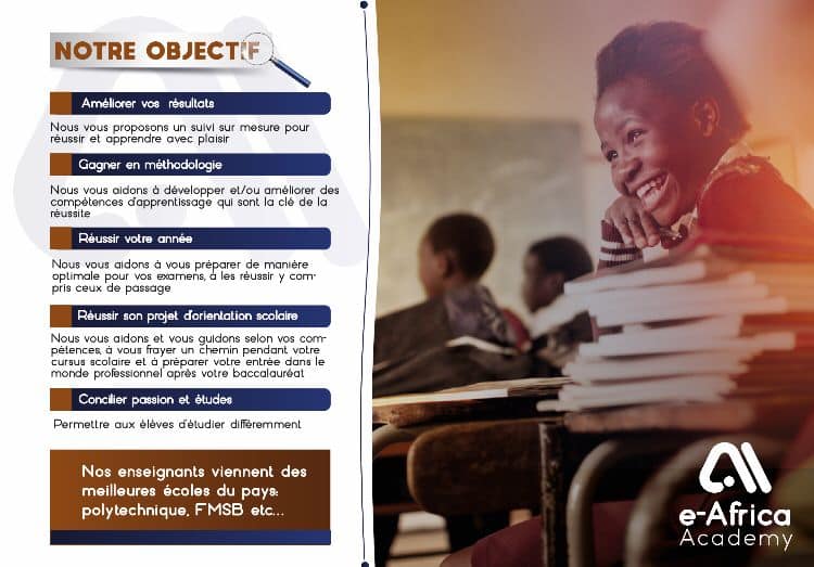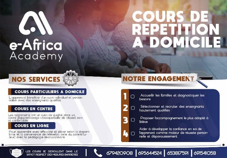 E-Africa Academy est un service de de soutien scolaire à domicile. E-Africa Academy permet à votre enfant de rattraper son retard et de pallier ses lacunes, grâce à des cours à domicile. Nous vous proposons de trouver un professeur particulier pour des cours de soutien scolaire, un suivi sur mesure pour réussir et apprendre avec plaisir.