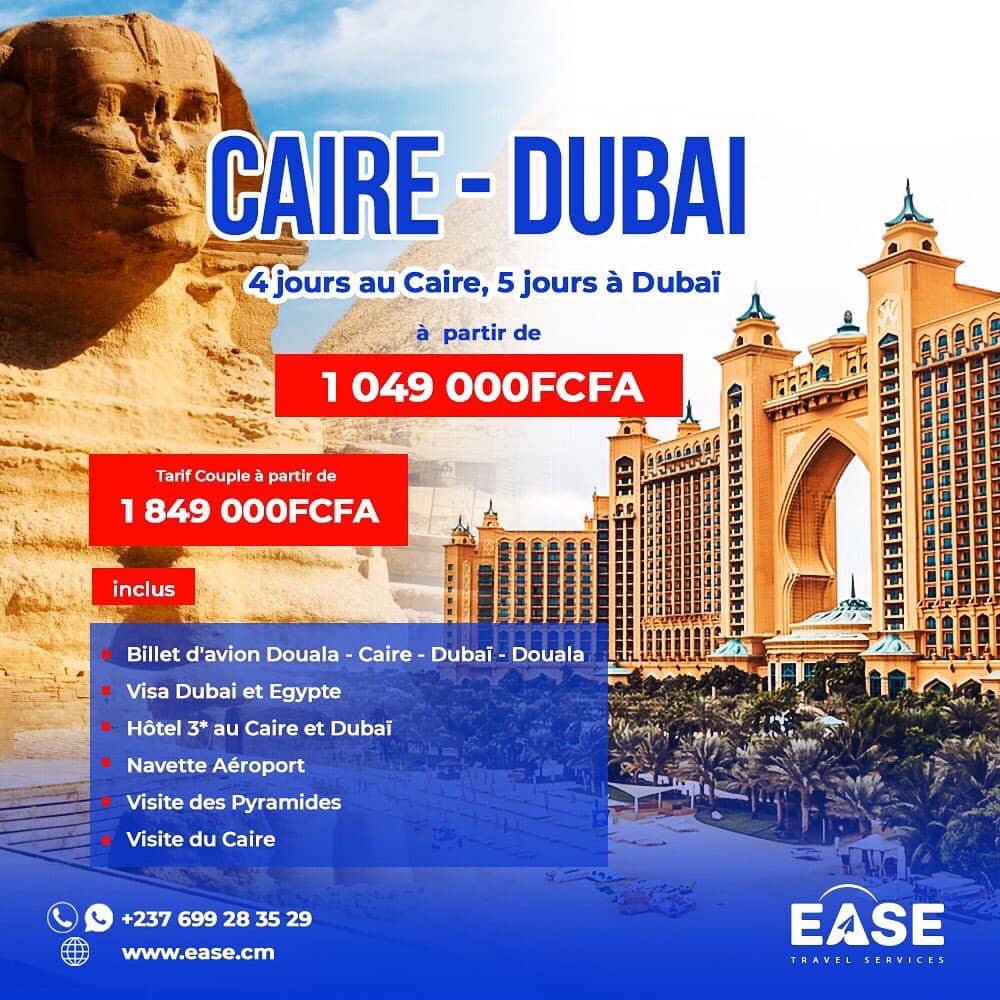 EASE TRAVEL SERVICES est une entreprise camerounaise, basée à Douala, qui à travers son système informatisé de réservation, son site internet et son application mobile offre à ses clients des prestations de vente de billets d'avion, location de voiture (horaire et journalière), transfert d'aéroports, assurance de voyage...