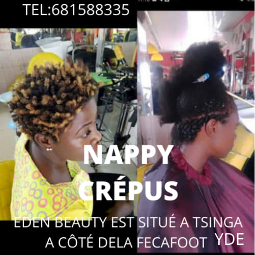 Eden Beauty est un salon de beauté afro qui met son expertise et son savoir-faire en dermocosmetique , esthétique et soins capillaire au service de la femme africaine qui assume sa peau ébène et ses cheveux nappy. Eden Beauty est situé à Yaoundé au quartier Tsinga.