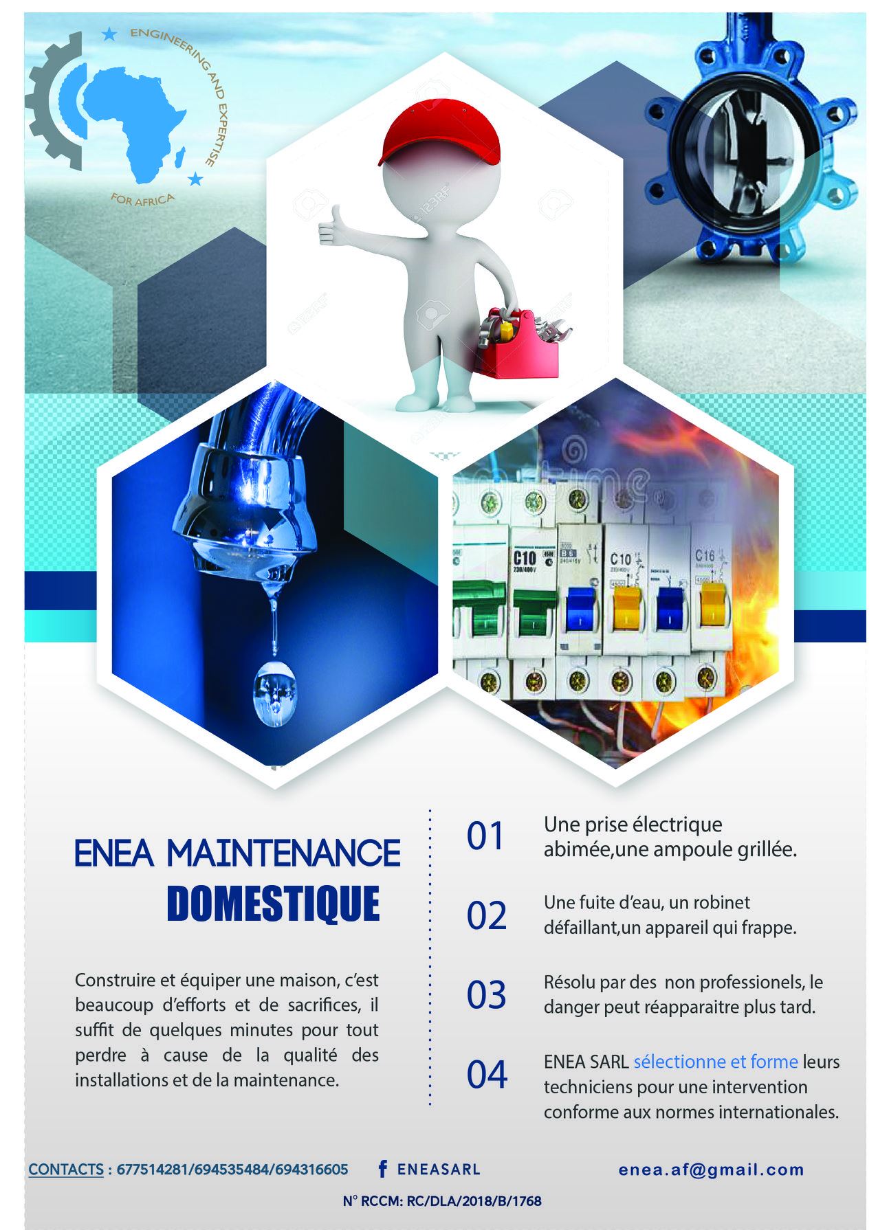 Engineering and Expertise in Africa (ENEA) est un bureau d'étude multidisciplinaire spécialisé dans plusieurs domaines tels que : Le génie civil bâtiment, génie urbain, gestion des projets, industries et tic, gestion de la production, maintenance industrielle, maintenance domestique, énergie et maitrise de l'énergie, maintenance des infrastructures, eau et assainissement. ENEA, Africa of tomorrow.