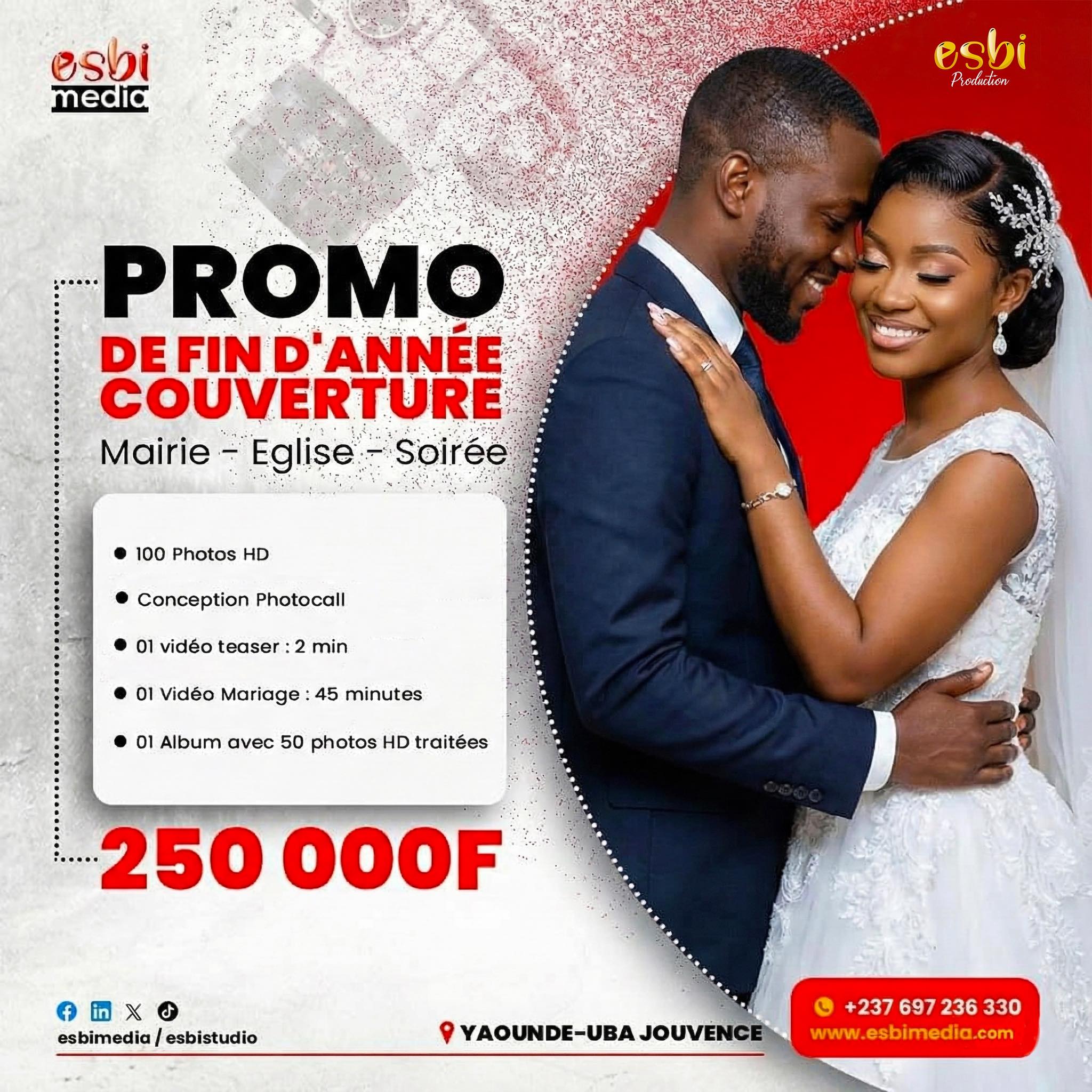 Esbi Studio, situé à Jouvence, Yaoundé, est un studio de création audiovisuelle et multimédia spécialisé dans la production de contenus de haute qualité. Offrant des services variés tels que les photos professionnelles, la production de vidéos, la voix off, la création d'animations 2D et 3D, ainsi que la conception et réalisation d'émissions télévisées, Esbi Studio se distingue par son expertise et son innovation. Que ce soit pour des projets personnels, corporatifs ou médiatiques, l'équipe talentueuse du studio met son savoir-faire au service de vos idées, transformant chaque projet en une œuvre unique et captivante.