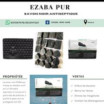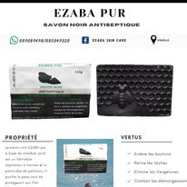 Ezaba Pur est un savon à base du charbon actif qui absorbe les impuretés, élimine l'excès de sébum, combat les boutons, l'acné et les démangeaisons, élimine les tâches, vergetures, régénère la peau et la rend plus lisse, n'assombrit pas le teint. Ezaba Pur apporte à l'épiderme un coup d'éclat, unifie le teint, il exfolie la peau en douceur et permet de réaliser un léger peeling mécanique de la peau.