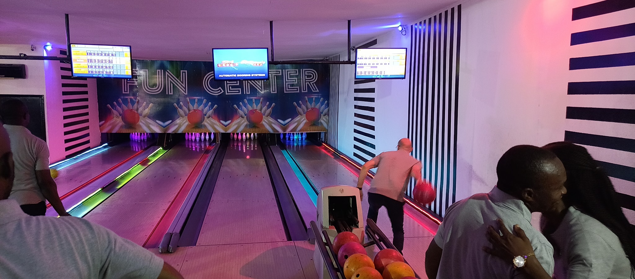 Le Fun Center est un espace de détente lounge bowling situé à Bonapriso, Douala. C’est l’endroit idéal pour s’amuser entre amis, avec sa famille, avec son copain ou sa copine avec trois attraits principaux : Le restaurant, les jeux divers et variés et le bowling.