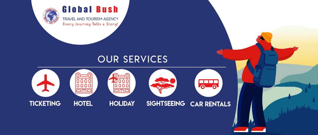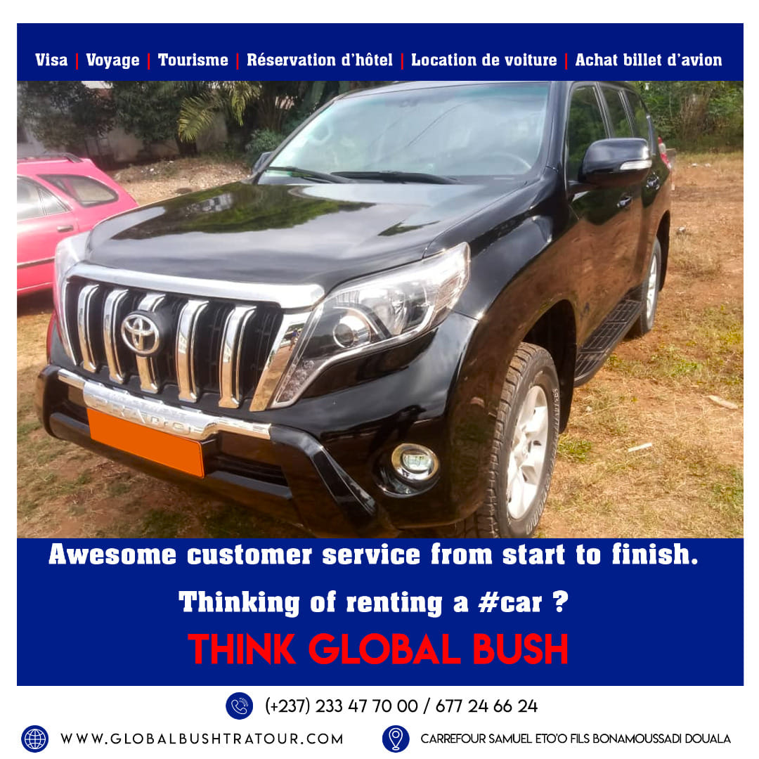 Global Bush Travel and Tourism Agency, une agence de voyage/voyagiste sous-régionale d'Afrique centrale dont le siège est à Douala au Cameroun, visant à organiser et à offrir des expériences authentiques à tous les meilleurs sites touristiques d'Afrique. Global Bush propose des services de gestion de destinations dans toute la sous-région de l'Afrique centrale. Offrant à la fois des vacances d'aventure en petit groupe et des itinéraires sur mesure. Global Bush vise à combiner la nature, les gens et une culture diversifiée à la satisfaction de ses clients. Nous vous emmenons dans des endroits et vous exposons à des avenues où vous pouvez interagir et profiter de la beauté de tout ce que l'Afrique a à offrir. Global Bush Travel and Tourism Agency dispose d'une agence à Yaoundé au quartier Bastos.