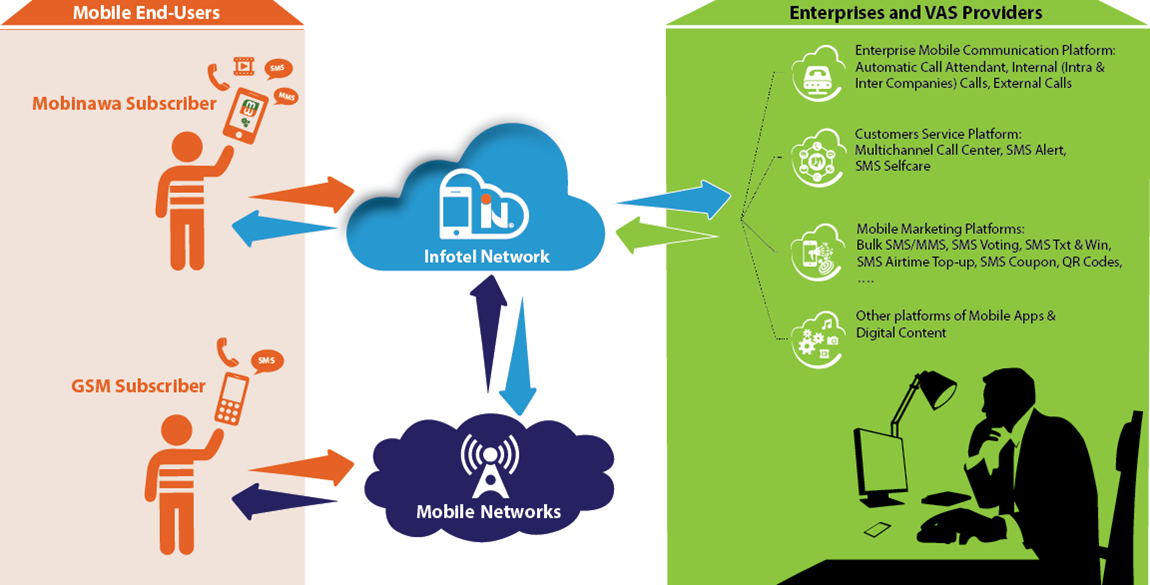 GTS-Infotel (Global Telecom Services - Infotel Cameroon) is The pioneering licensed Mobile VAS Network Operator (MVNO) specialized in the provision of long VAS Numbers services to Applications, and accessible across Internet networks and/or GSM networks to mobile end-users. Operating for more than 10 years as a licensed Shortcode/VAS Provider in Cameroon and Nigeria, each GTS-Infotel subsidiary have recently been granted a new type of VAS license, allowing them to become the first local OTT services & VAS Operator, specialized in :