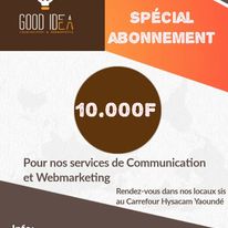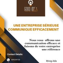 Good idea est une agence de communication spécialisée dans la stratégie de communication et le webmarketing. Pour tous vos besoins de conception de flyers, affiches, logo, cartes de visites, spots audiovisuels, création des pages Facebook et sites web à des coûts défiants toute concurrence adressez-vous à nous pour une satisfaction garantie.