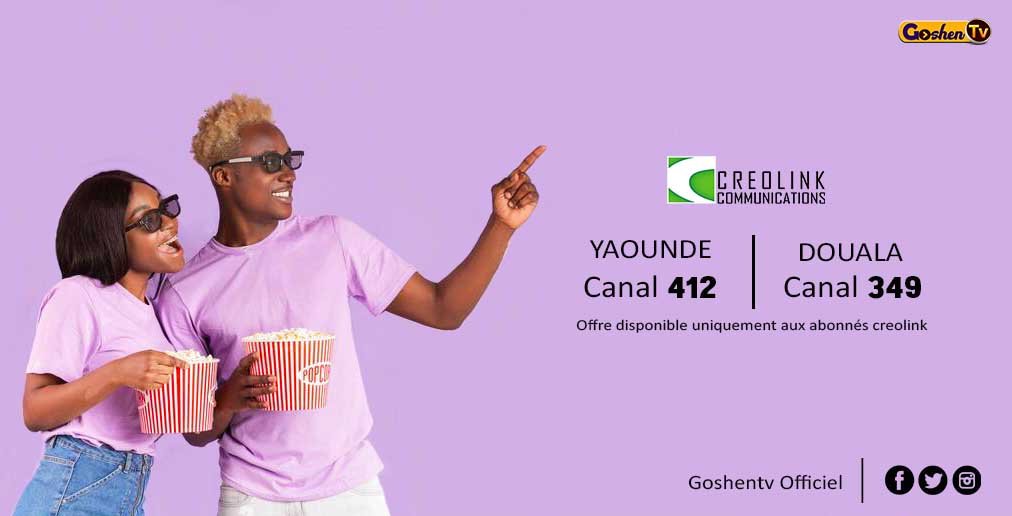 Goshen télévision est la première chaine TV 100% gospel au Cameroun. Goshen télévision est un média chrétien dédier exclusivement sur la promotion de la musique gospel qui diffuse 24h/24h sur internet et également sur le bouquet Créolink Cameroun.