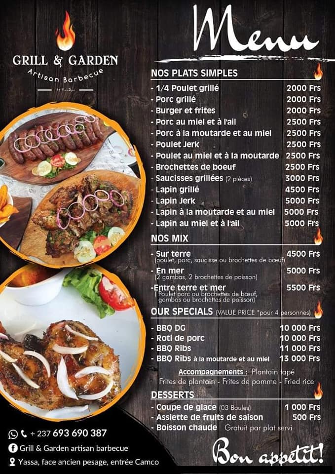 Grill and Garden Artisan Barbecue est votre espace BBQ jardin ou vous dégusterez de délicieuses, fondantes, moelleuses et juteuses grillades american style. Vous aurez à votre disposition le jardin pour toutes vos cérémonies privées et professionnelles en plein air. Tout ceci Dans un cadre rustique, reposant, convivial, chaleureux, accueillant, vous rappelant la nature, le calme, la sérénité.