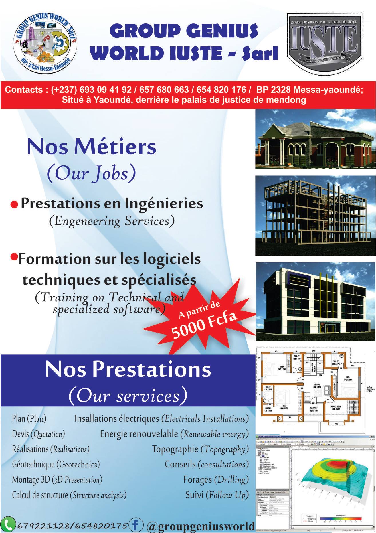Group Genius World Uste est un groupe d'ingénieurs exerçant dans différentes branches du génie industriel et prêts à mettre leurs talents à votre disposition